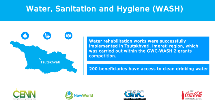 The project – “WASH Initiative for Socially Vulnerable Women and Children Living in Rural Georgia” – is being implemented by CENN within the New World Programme (NWP), which is financially supported by the Global Water Challenge and the Coca-Cola Foundation (TCCF).